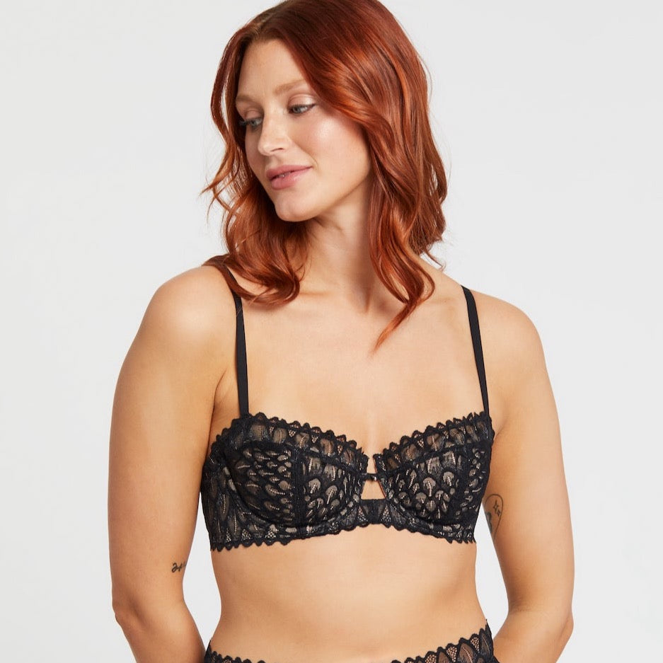 Montelle Black Lacy Keyhole Balconette Bra (B-G)
